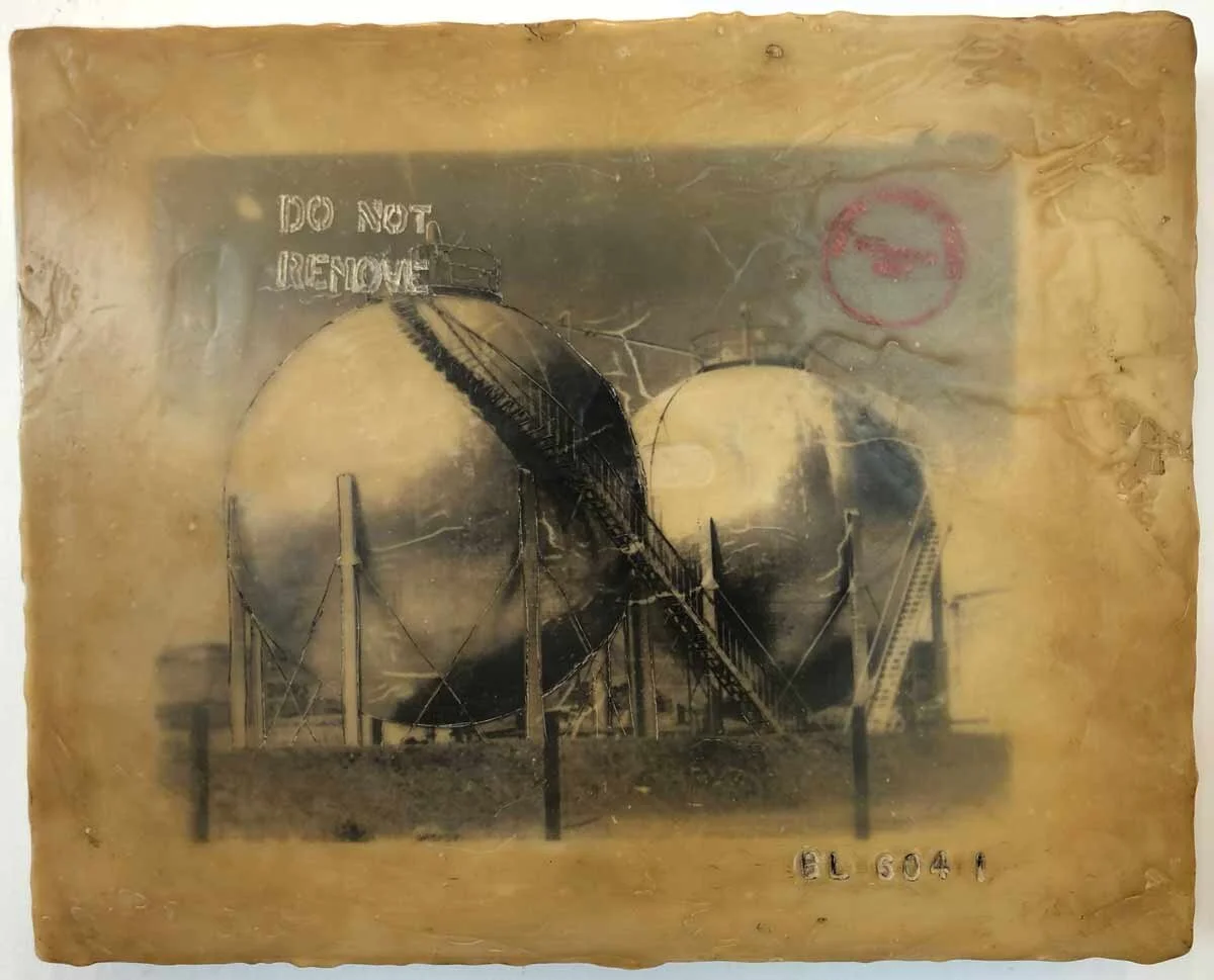 For me, reproducing these photos and then covering them in layers of wax is a way to demonstrate my desire to preserve the memories in these photos. I've carved into the wax layers, tracing over the forms, and then rubbing oil paint into the lines to outline and highlight the important subjects in the photos, and make sure they don't get lost under the layers. These photos were all clearly stamped by the archives with "DO NOT REMOVE" and "RESEARCH ONLY," and I've maintained these instructions in my paintings, echoing a sentiment that these not be removed (from our collective conscious), but instead used as for research or reflection.