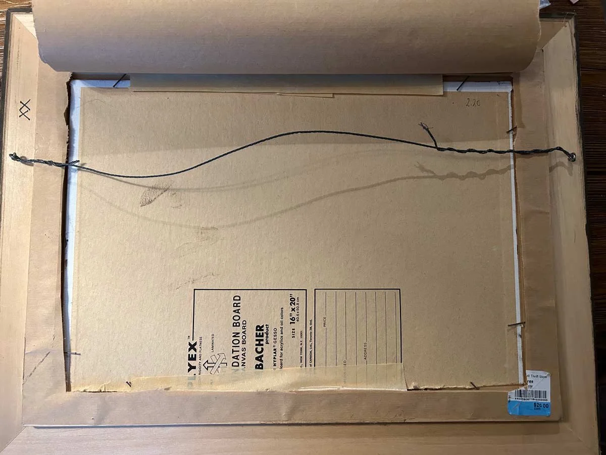 Purchased for $10 at Goodwill South Edmonton in November 2024, the painting now exists far from its original context. Whatever home it once belonged to, whatever view it once echoed, has been replaced by a different kind of stewardship—one that values the object not for its pedigree, but for its quiet persistence.